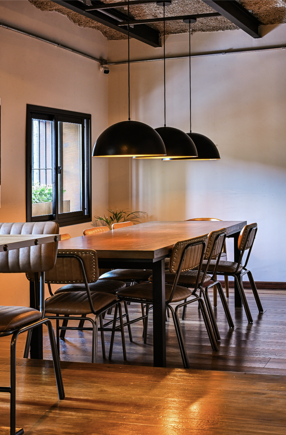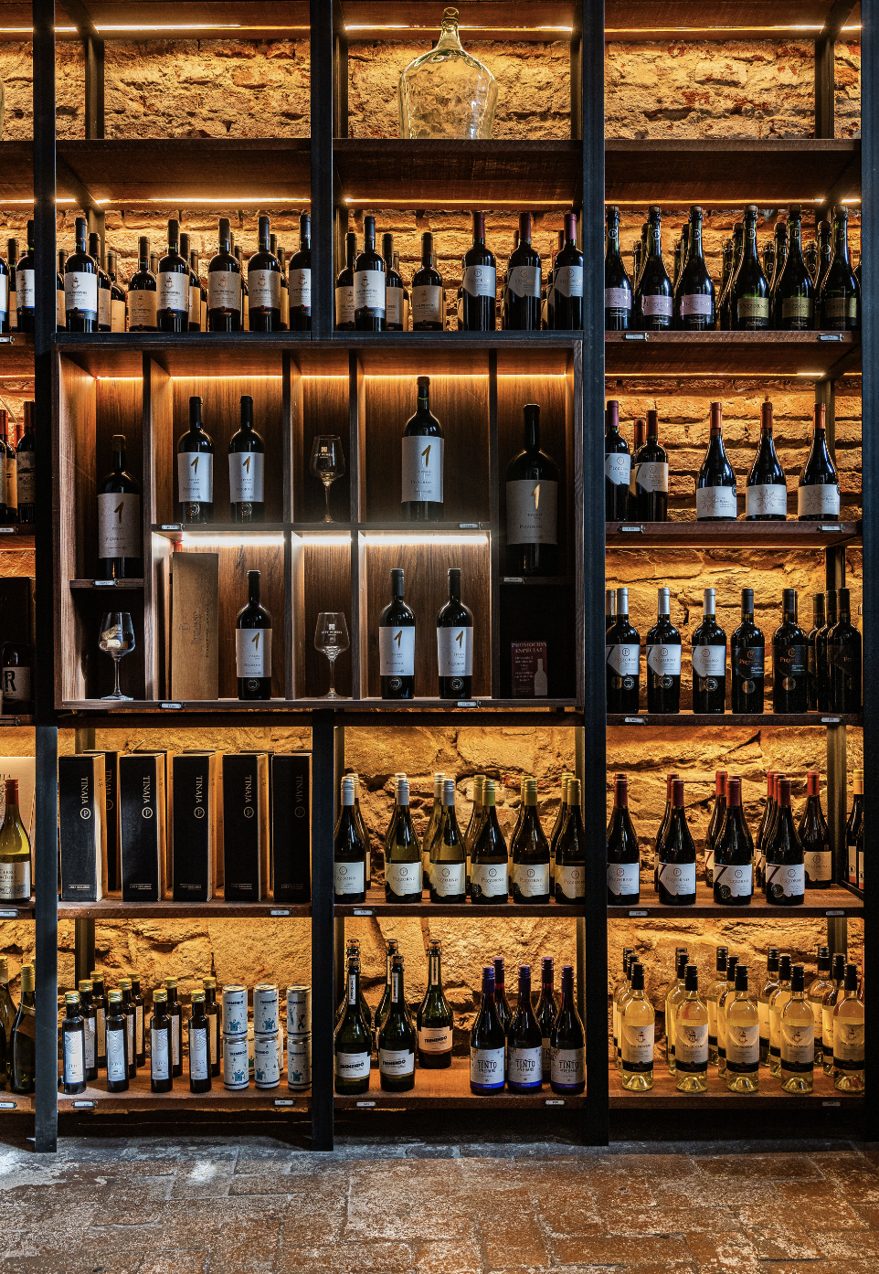 El mobiliario acompaña la experiencia: organiza los ambientes e incorpora al vino como parte del recorrido. Un espacio donde vino, arquitectura y ciudad se encuentran.