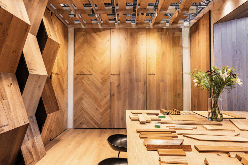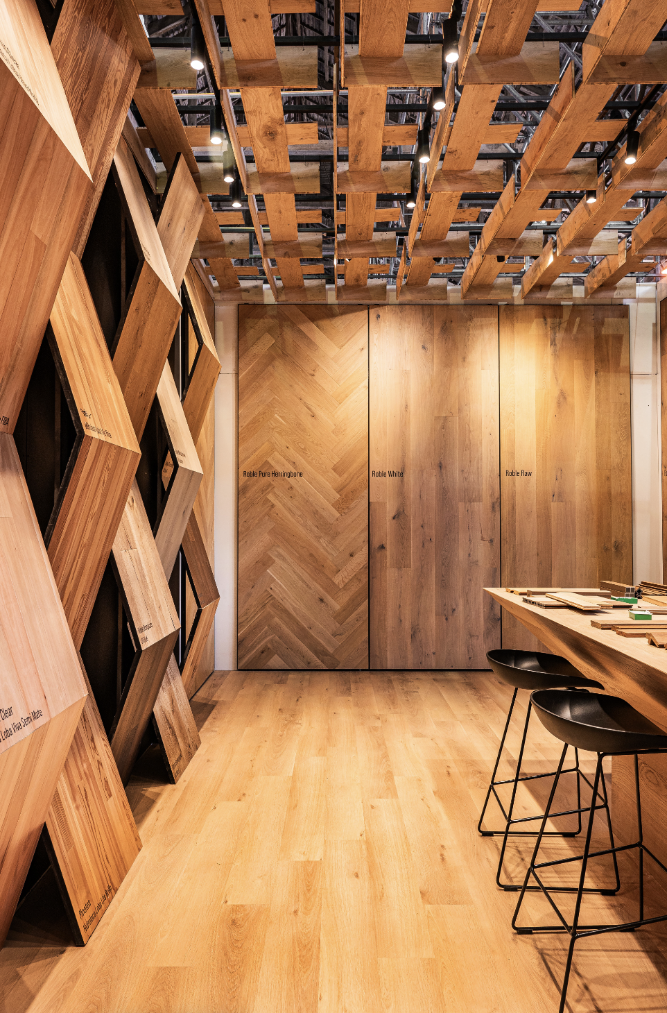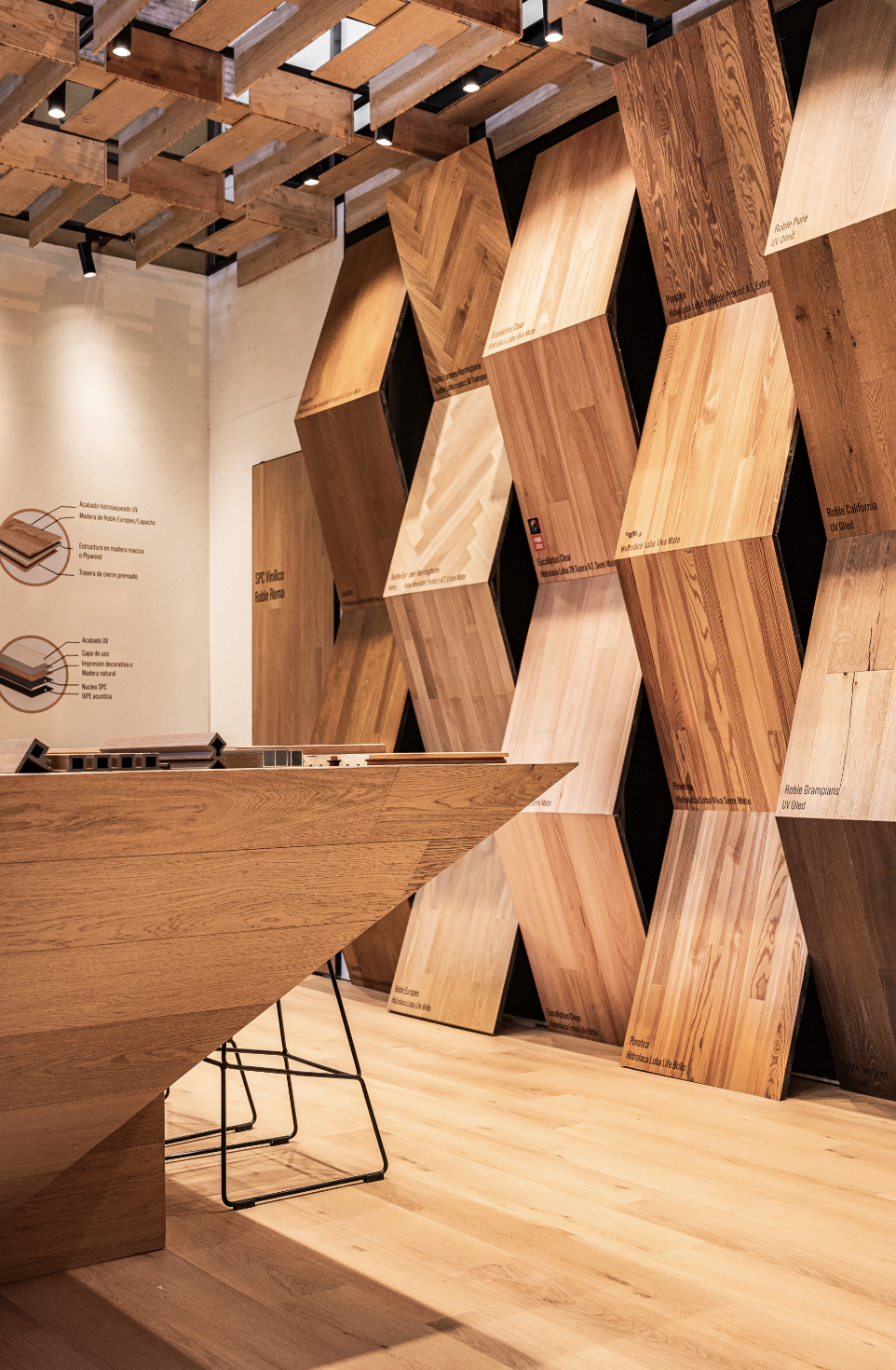 Diseñado para experimentar el producto en acción, el espacio permite ver, tocar y comparar, mientras su sistema modular y de ensamblaje en seco facilita el rearmado y reutilización en futuras exhibiciones.