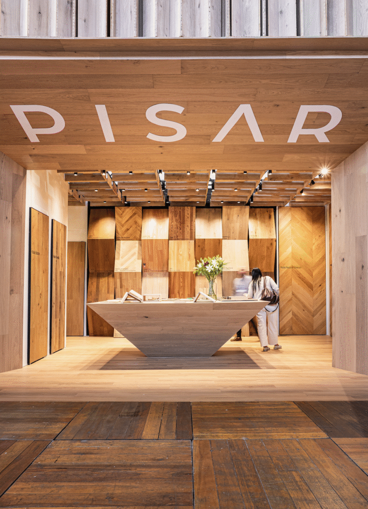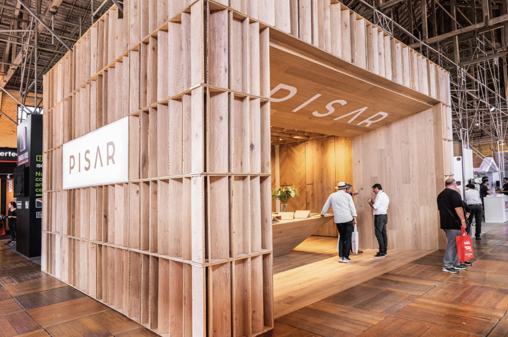 Con una mesa central en forma de diamante y una fachada inspirada en el minimalismo japonés, el stand invita a descubrir la experiencia PISAR desde una mirada arquitectónica y sustentable.